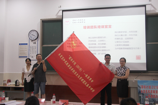 2019年8月2日讯(通讯员 周克江):8月2日,由我院承办的“国培计划(2019)”——张家界永定区和武陵源区学校信息化管理团队研修项目(C114),在湖南第一师范院鹤鸣楼南111教室隆重开班。继续教育学院院长曾小玲、本院总支书记王杰文、副院长田祖伟、副院长何向阳,永定区和武陵源区相关领导,培训班管理团队全体成员及60名学员参加了开班仪式。