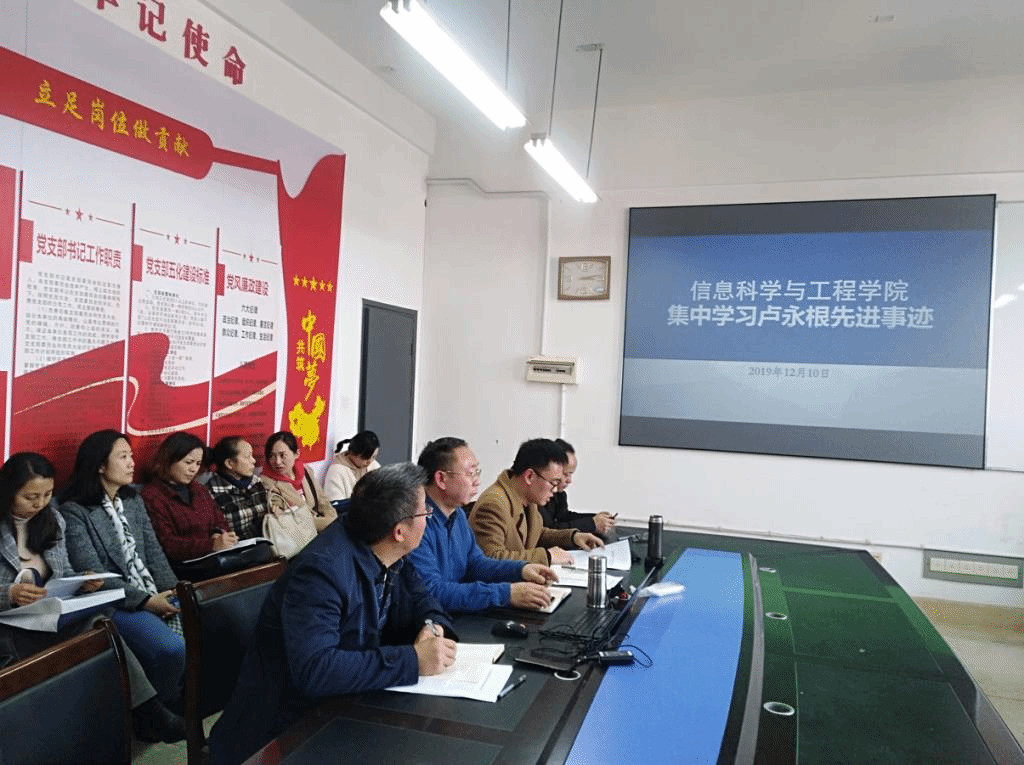 学院党总支副书记成夏炎领学了《教育部关于在教育系统深入开展向卢永根同志学习的通知》,并要求全院教职工认真学习卢永根同志爱党爱教、为国家事业矢志奋斗的坚定信念,潜心钻研、为造福人民勇于攀登的赤诚情怀,立德树人、为培育英才鞠躬尽瘁的使命担当,艰苦朴素、为助教励学无私奉献的崇高精神。希望全院教职工以卢永根同志为榜样,结合“不忘初心、牢记使命”主题教育,立足岗位,努力工作,争做一名有理想信念、有道德情操、有扎实学识、有仁爱之心的“四有”好老师。