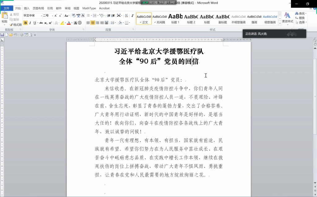 会上,学院党总支副书记成夏炎领学了“习近平总书记给北京大学援鄂医疗队全体“90后”党员的回信”。与会同志表示,在这次抗击新冠肺炎疫情的过程中,以“90后”党员为代表的一大批青年奋战在抗“疫”一线,不畏艰险、冲锋在前、舍生忘死,为国家取得疫情防控的阶段性胜利贡献了力量。我们应引导全院广大师生学习他们的大爱与无畏的精神,在抗“疫”中发挥各自更大作用。
