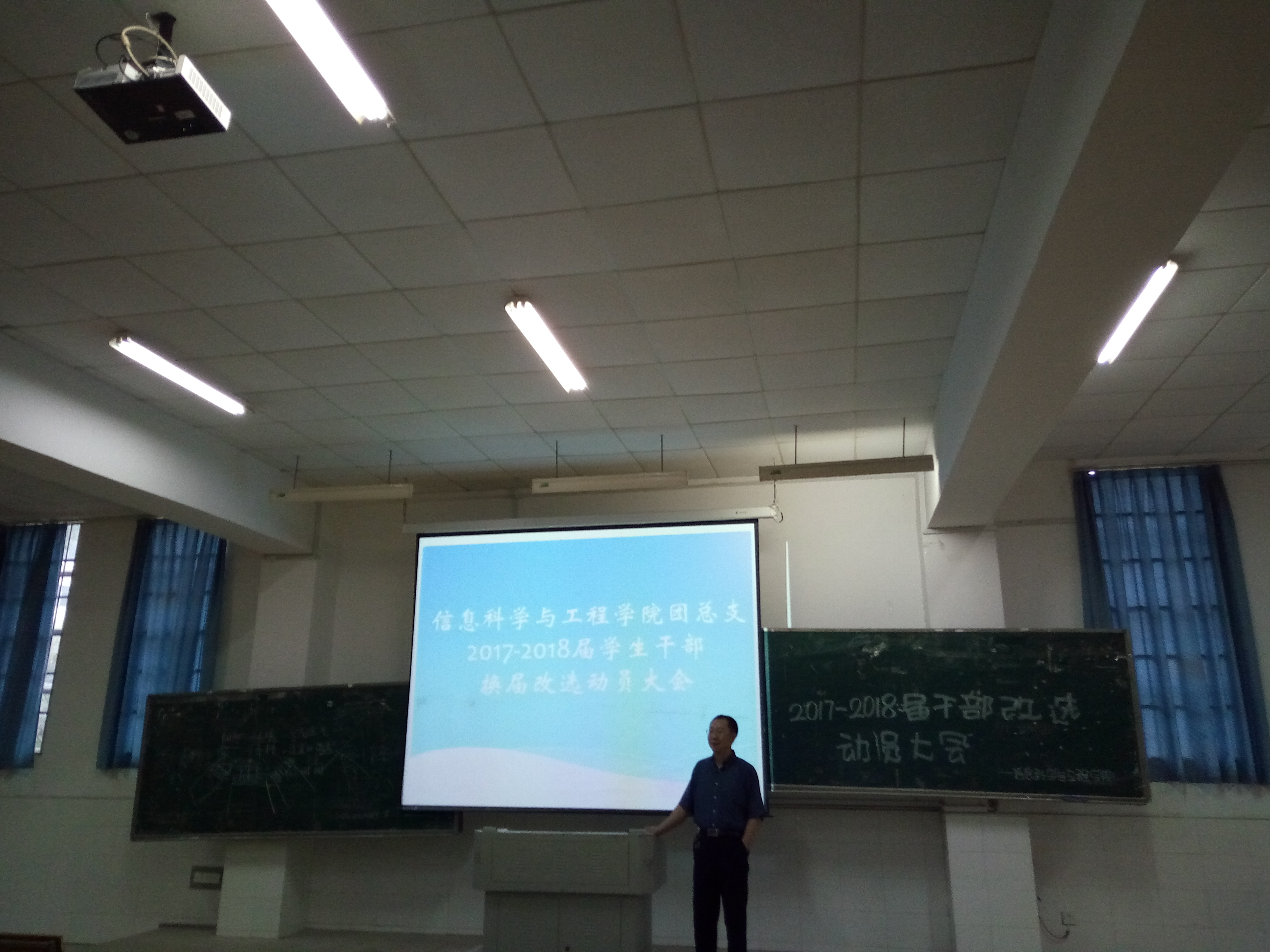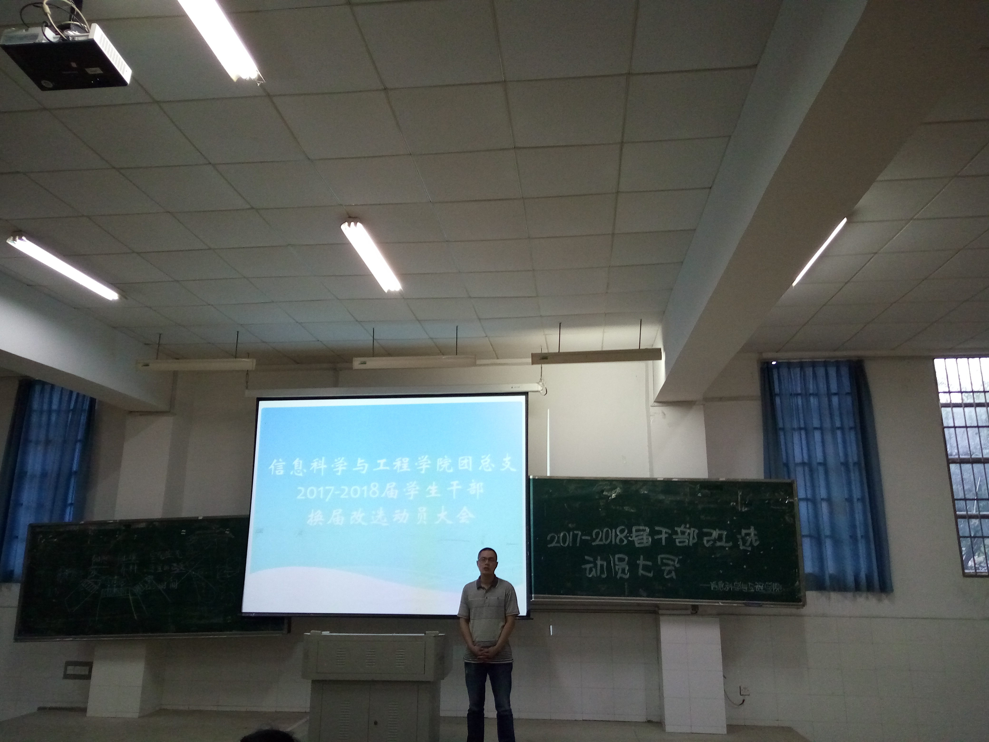 (通讯员龙紫荆) 为推动我院2017-2018届学生干部换届改选工作顺利完成,信息科学与工程学院于2017年6月14日晚6点在实验楼C栋101教室召开学生干部换届改选动员大会。学院党总支书记王杰文,副书记罗祥云出席会议并作动员讲话。团总支书记李豪杰及2016-2017届全体学生干部与助理参加了此次大会。