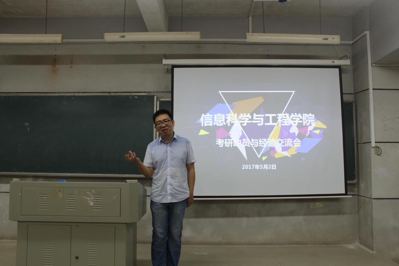 (通讯员袁思思) 为提高学生考研积极性,解答学生备考过程中的疑惑。5月2日晚7点,信息科学与工程学院于理B101教室召开了考研动员暨经验交流大会。学院通信工程教研室主任孙元博士和新东方培训学校张巧临老师应邀出席,14、15级高招学生参加本次会议。会议由李豪杰老师主持。