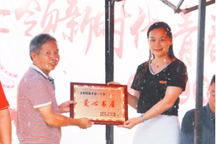 新航向梦之队共赠与第一片小学校450册图书,价值约人民币15000元,湖南第一师范学院信息科学与工程学院党总支副书记易利老师为第一片小学校”爱心书屋”授牌,并表达了对第一片小学校的美好祝愿。