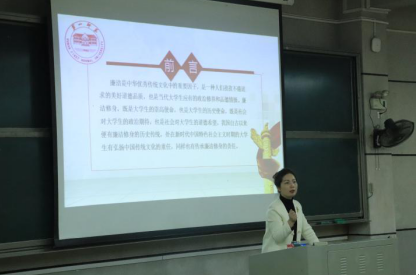袁向荣从廉洁修身的释义、重要意义以及主要途径三大方面展开授课,以廉洁在中华传统文化中渊源的历史为作导向,继而提出我国当代反腐倡廉新常态,引导学员深刻把握廉洁修身对个人、学校和社会的重要意义,呼吁学员培养诚信人格、增强规则意识、修炼四大作风,做到廉洁修身。
