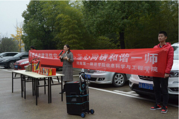 (通讯员 唐瑞鸿 邹雅移)为进一步普及消防安全知识,提高全院师生的防范自救意识与突发事件处理能力,2018年11月21日中午12:30,信息科学与工程学院在体育馆外侧成功举办“手牵手共建消防校园,心连心同铸和谐一师” 消防安全教育活动。校保卫处副处长李亚林、学生工作处副处长吴涛、学生工作处副处长欧阳伶俐、院党总支书记王杰文、副院长王建军、党总支副书记易利、学工办全体老师出席本次活动。活动特邀湖南协诚消防学校吕勇、李友两位教官为我院师生宣讲消防安全知识。