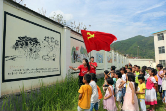 如同瑶族乡不远处的山脉常在,关于红军长征的故事也长久地流传在这里。7月21日下午,党旗迎风飘扬,湖南第一师范学院信息科学与工程学院新航向·梦之队同第一片小学校百余名学生通过一堂长征精神主题课,重温红军长征艰苦卓绝的光荣历史,追寻革命先辈的光辉足迹,用心灵感受长征的伟大意义。