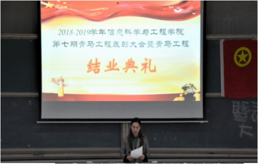 至此,信息科学与工程学院2018-2019届第七期青年马克思主义者培养工程结业典礼暨表彰大会圆满结束。相信每一位参加培训的学员都将在未来的学习生活中勇担责任、传承精神,成长为一名有作为、有担当、有能力的优秀青年马克思主义接班人。