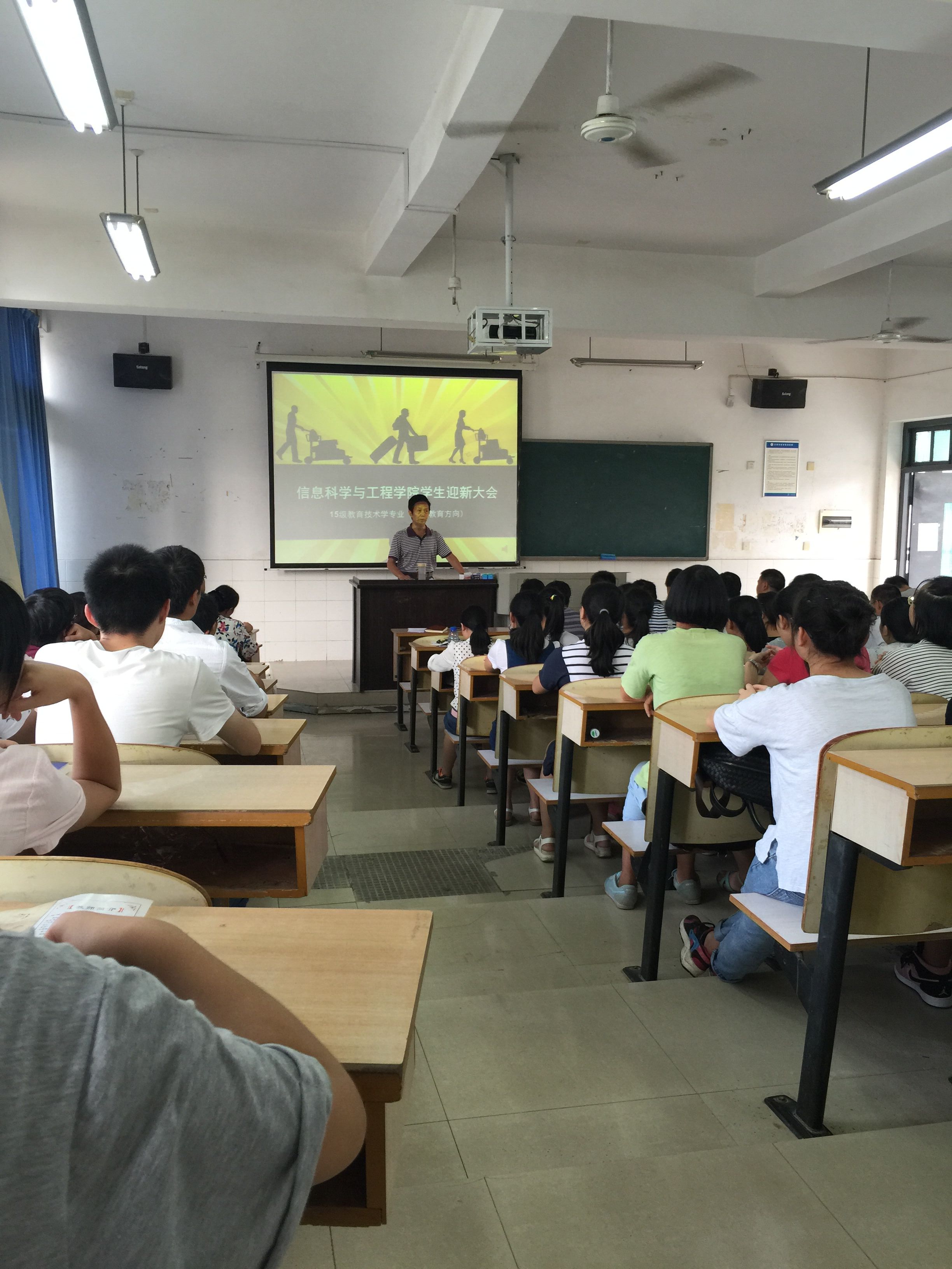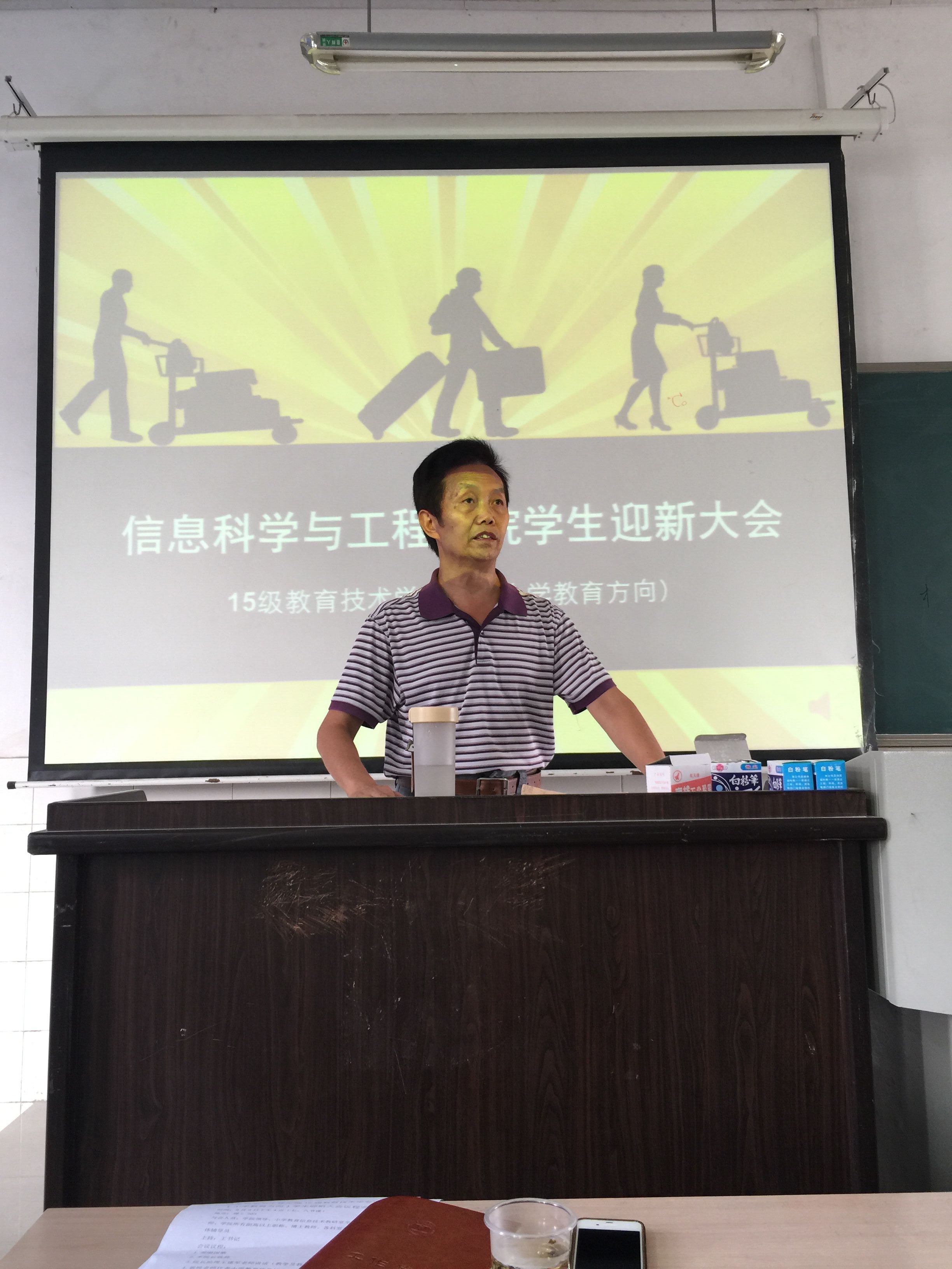 (通讯员 肖亚丽 申文洁 易利) 2015年9月9日下午四点,信息科学与工程学院在理科楼c栋503举行15级教育技术学(小学教育方向)学生迎新大会。校长助理、信息科学与工程学院院长李勇帆、党总支书记王杰文、院长助理王建军、小学教育信息技术教研室全体教师、各部门负责人、副高以上职称、博士和全体辅导员等共计20余人出席了本次迎新大会。迎新大会由王杰文主持。