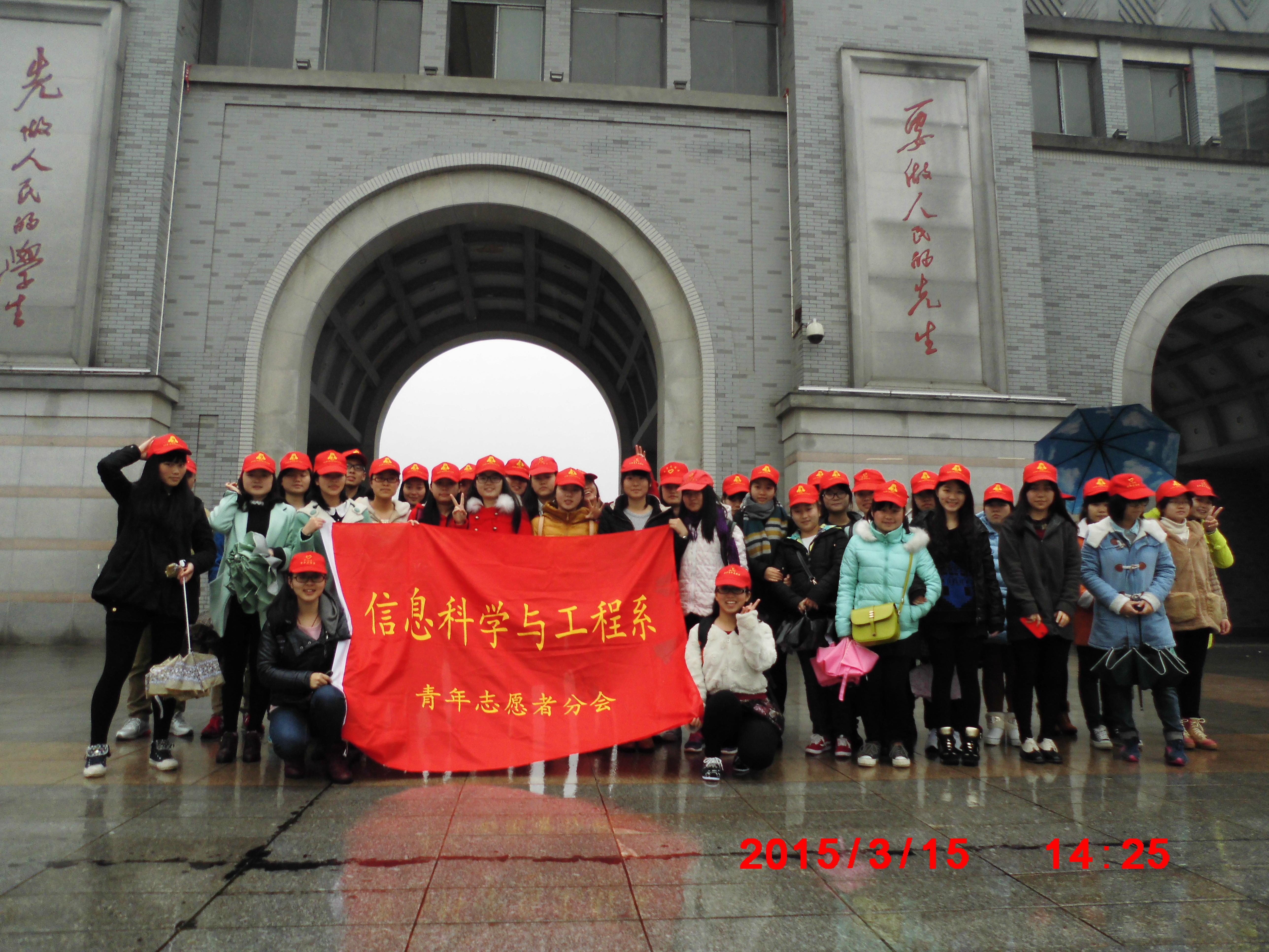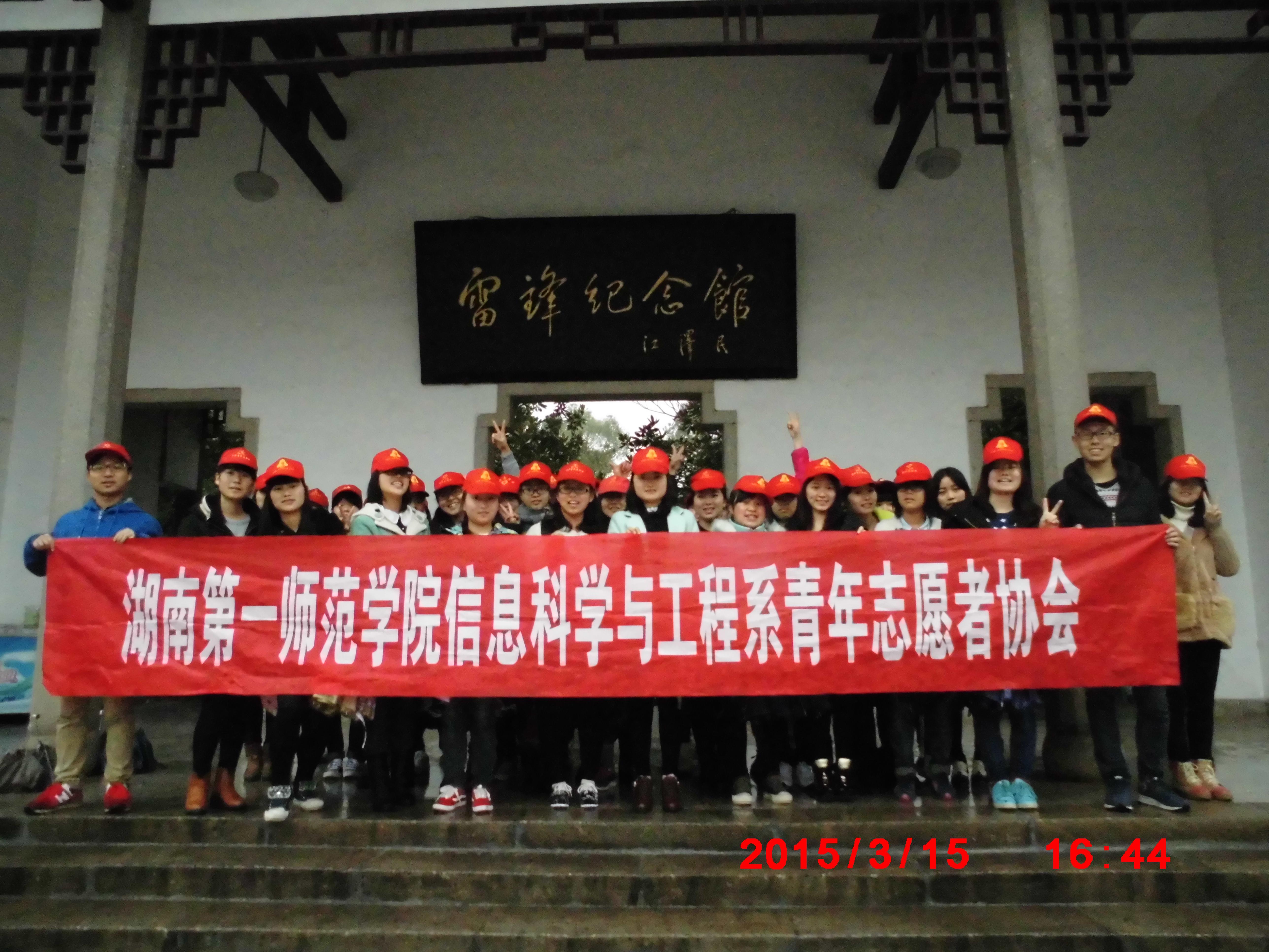 (通讯员 胡艳 吴玲峰) 三月"雷风"来袭,我院青志协将与你一起"相约春天,与雷锋精神同行"。2015年3月15日,信息科学与工程学院青年志愿者协会开展“雷锋纪念馆志愿行”活动,三月学雷锋活动正式拉开序幕。本次活动由青志协主席胡艳、策划部部长王青青组织带领全院42名志愿者共同参观了雷锋纪念馆。
