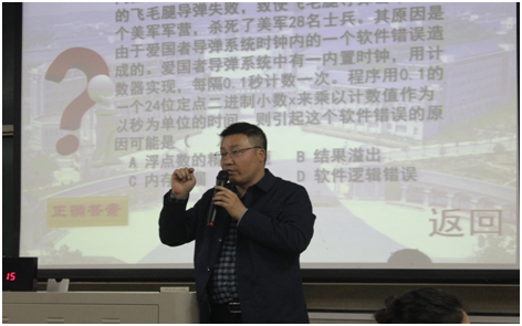 经过初赛,共有六组代表队冲破激烈角逐最终进入决赛。决赛共设必答题、抢答题和加时题三种题型,采取积分赛制。题目涵盖了计算机系统基础、程序设计、数据库等相关内容。比赛开始后,各队迅速进入状态,积极迎战。必答题环节,各队选手渐入佳境,细致谨慎,思路清晰,紧咬比分。抢答题环节,选手们机敏应战,当仁不让,互不示弱,灵活丰富的运用所学专业知识,赢得阵阵掌声,折服了现场的观众。