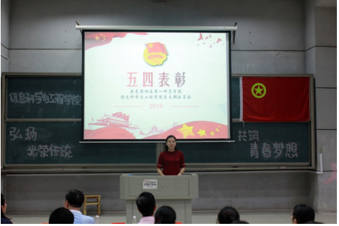 随后,学院团总支书记唐瑞鸿作共青团信息科学与工程学院总支部委员会2017-2018学年工作报告。唐瑞鸿在报告中指出:一年来,我院广大青年团员在学院党总支和上级团组织的正确领导下,紧紧围绕学校中心工作,以青年理想信念教育为先导,以基层团组织建设为基础,以校内外实践活动为载体,以学风建设工程引领为抓手,以提高青年学生的综合素质为主体,全面履行共青团的四项基本职能,服务青年学生成长成才,在加强团的自身建设,拓展团的特色工作,增进团的创新活力等方面取得了可喜的成绩。