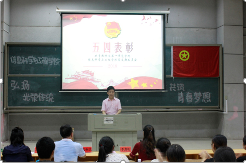 (通讯员 唐瑞鸿 赵越 罗德琳)5月16日晚,共青团湖南第一师范学院信息科学与工程学院2017-2018学年总支部委员会工作总结暨五四表彰大会在玉衡楼报告厅(二)举行。校长助理、信息科学与工程学院院长李勇帆、学院党总支书记王杰文、党总支副书记易利、团总支书记唐瑞鸿出席会议,2017-2018届全体学生干部及助理,各班级学生代表共计200余人参加此次会议。