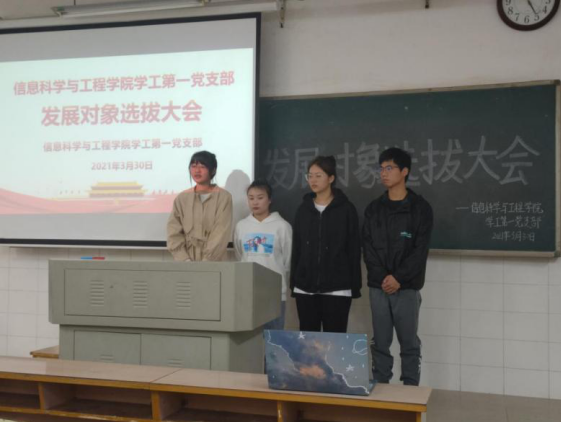 2021年3月30日,我院学工第一、第二党支部在玉衡北209、210召开发展对象选拔大会。学工第一党支部书记关红儒、学工第二党支部书记李荣敬,全体学生党员和69名入党积极分子参与此次大会。大会分别由戴玉洁、刘妍主持。
