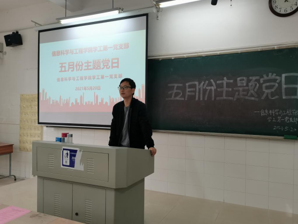 5月20日,信息科学与工程学院学工第一、第二党支部分别于玉衡北208、209召开五月份主题党日暨预备党员转正大会。参与大会的有党总支副书记成夏炎、学工第一党支部书记关红儒、学工第二党支部书记李荣敬、学工办老师唐瑞鸿、叶晶,以及全体学生党员。