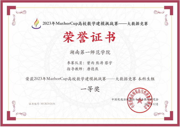 2023年第四届MathorCup高校数学建模挑战赛——大数据竞赛圆满落下帷幕,我院四支参赛队伍在激烈的竞争中脱颖而出,斩获了全国研究生组二等奖1项,本科生组一等奖3项。这一骄人成绩的取得,正是参赛队员们的辛勤付出和指导教师的悉心指导的结果。