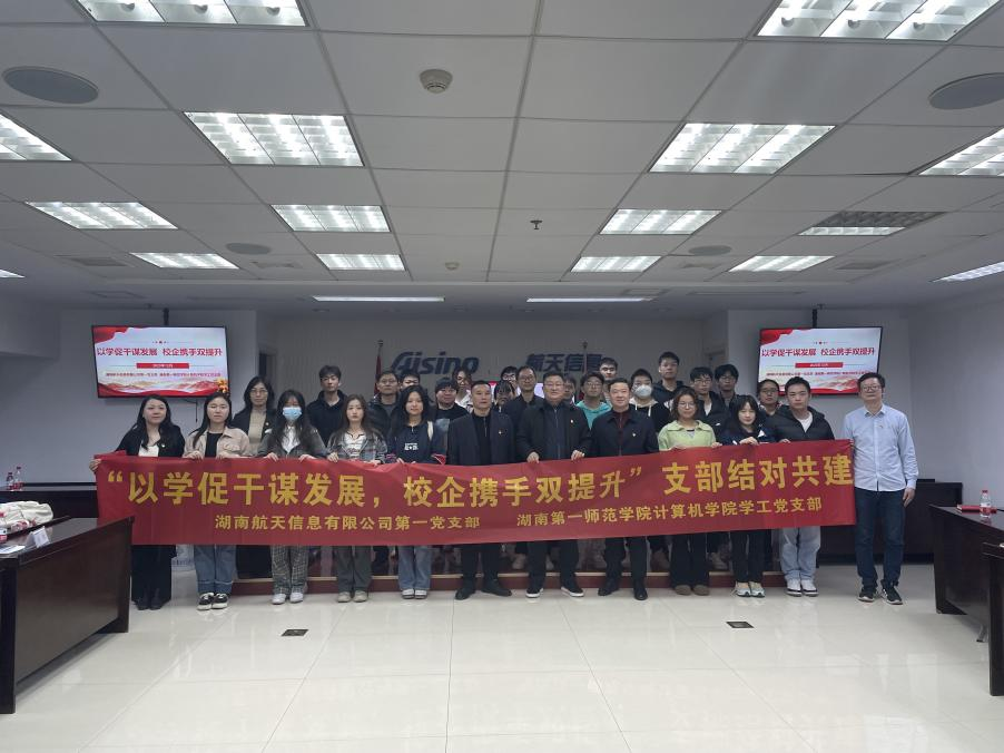 为进一步推进校企交流合作,12月6日下午,BETVLCTOR伟德在线学工党支部与湖南航天信息有限公司第一党支部联合开展“以学促干谋发展”“一课一片一实践”支部共建活动。BETVLCTOR伟德在线党委书记刘立勇、湖南航天信息有限公司党总支书记、总经理覃巍,湖南航天信息有限公司副总经理李江华,湖南航天信息有限公司党员代表,BETVLCTOR伟德在线教师党员代表、入党积极分子代表和学生干部代表参加了此次活动。