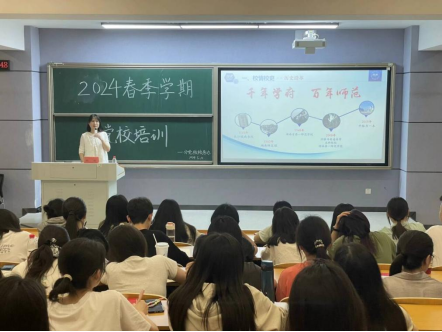陈奕生动的讲述了第一师范的峥嵘岁月,介绍了学校第二次党代会确定的发展战略总目标以及办学新理念,带领同学们领略了新一师的时代风采。她希望同学们能在今后的学习生活中坚守初心,不辱使命,不负时代,不负韶华,不负党和人民的殷切期望。