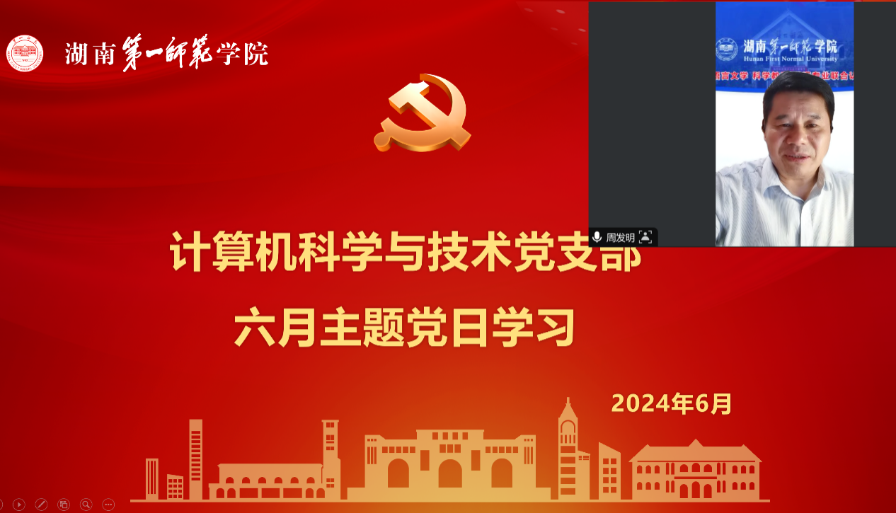 6月25日,校党委委员、副校长周发明计算机科学与技术党支部线上讲授主题党课,计算机科学与技术党支部全体党员教师参加了学习党课由支部书记林开彬主持