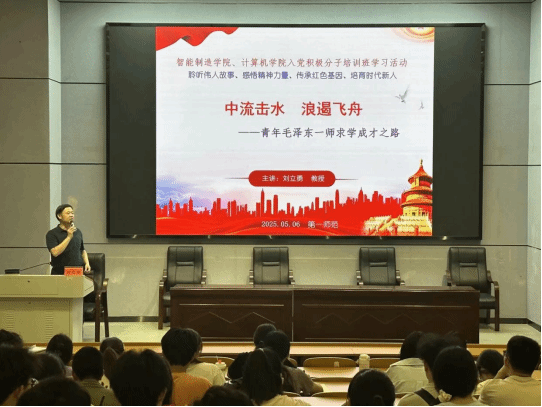 5月6日,文学与新闻传播学院党委书记刘立勇在怀中南110,为BETVLCTOR伟德在线、智能制造学院入党积极分子讲授党课,主题为“中流击水,浪遏飞舟——青年毛泽东一师求学成才之路”。