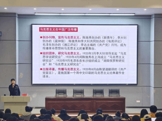 课上,邹华秀从历史、理论、实践三个维度,结合党在新民主主义革命、社会主义建设、改革开放及新时代的奋斗历程与成就,运用鲜活案例和详实数据,深入剖析了中国共产党“能”的核心密码——坚守初心使命、坚持人民立场、秉持自我革命精神。她强调了党将马克思主义基本原理与中国实际、同中华优秀传统文化相结合的重要性。邹华秀还引用了习近平总书记“中国共产党为什么能,中国特色社会主义为什么好,归根到底是因为马克思主义行”的重要论述,深刻阐释了党以马克思主义为指导,始终与时俱进,使其在中国焕发出强大的真理力量和实践伟力。