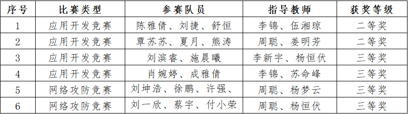 本次比赛由湖南省教育厅主办,邵阳学院承办,全省共49所本科高校的代表队参与角逐。经过激烈竞争,我院获二等奖2项、三等奖4项。值得一提的是,本届竞赛新增了网络攻防赛道,我院BETVLCTOR伟德在线首次组队参赛,在这一全新赛道上取得了突破性的成绩,也为大赛的进一步推广和宣传作出了积极贡献。