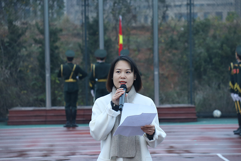 仪式上,学院党委副书记陈奕发表国旗下讲话。她以刚刚闭幕的党的十九届六中全会勉励广大学子“坚定理想信念、勤练本领才干、永葆奋斗本色。”她强调:全体师生在“两个一百年”奋斗目标的历史交汇点上,在学校发展的新起点上,要大有可为,也应有所为,紧紧围绕学校“一四”战略目标,“爱我一师、兴我一师”,以实际行动为“四个一师”建设贡献自己的力量。