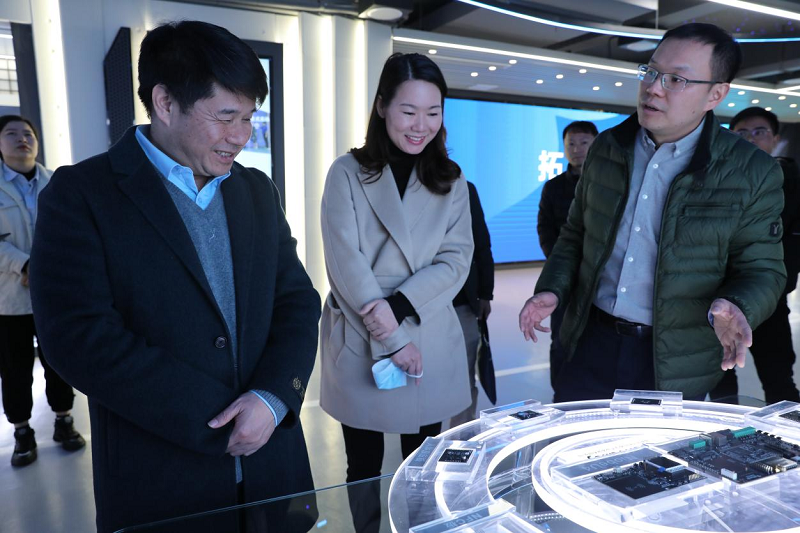 会前,肖前辉、梁栋及企业其他代表陪同周发明一行参观了拓维信息数字化体验中心展厅,了解拓维信息发展现状以及相关教育信创领域产品等。